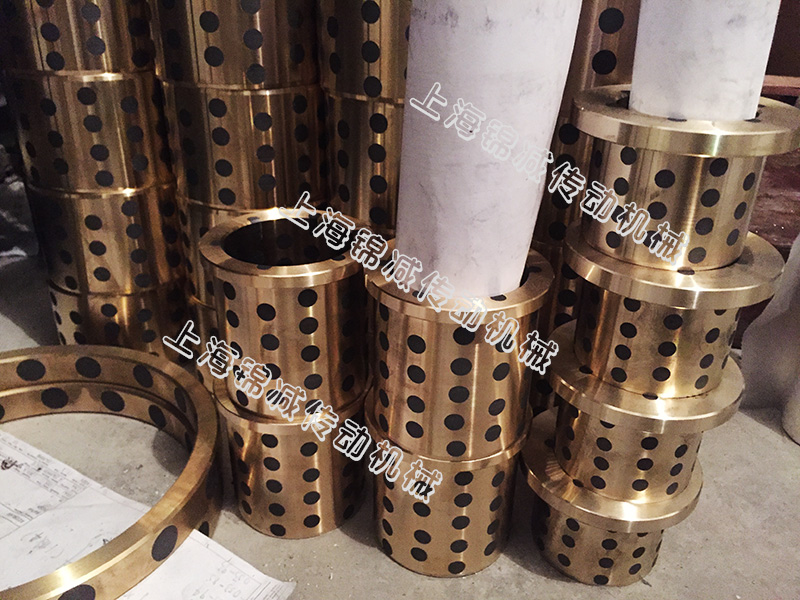 上海錦減傳動機械自潤滑石墨銅套,無油石墨銅套,石墨銅套以高力黃銅(ZCuZn25Al6)或ZQ9-4鋁青銅為基體,通過基體鑲嵌固體潤滑劑(石墨或二硫化鉬)的方式作為潤滑介質來替代傳統的錫青銅銅套,可在不易加油,長期缺油或者無油環境下使用。
